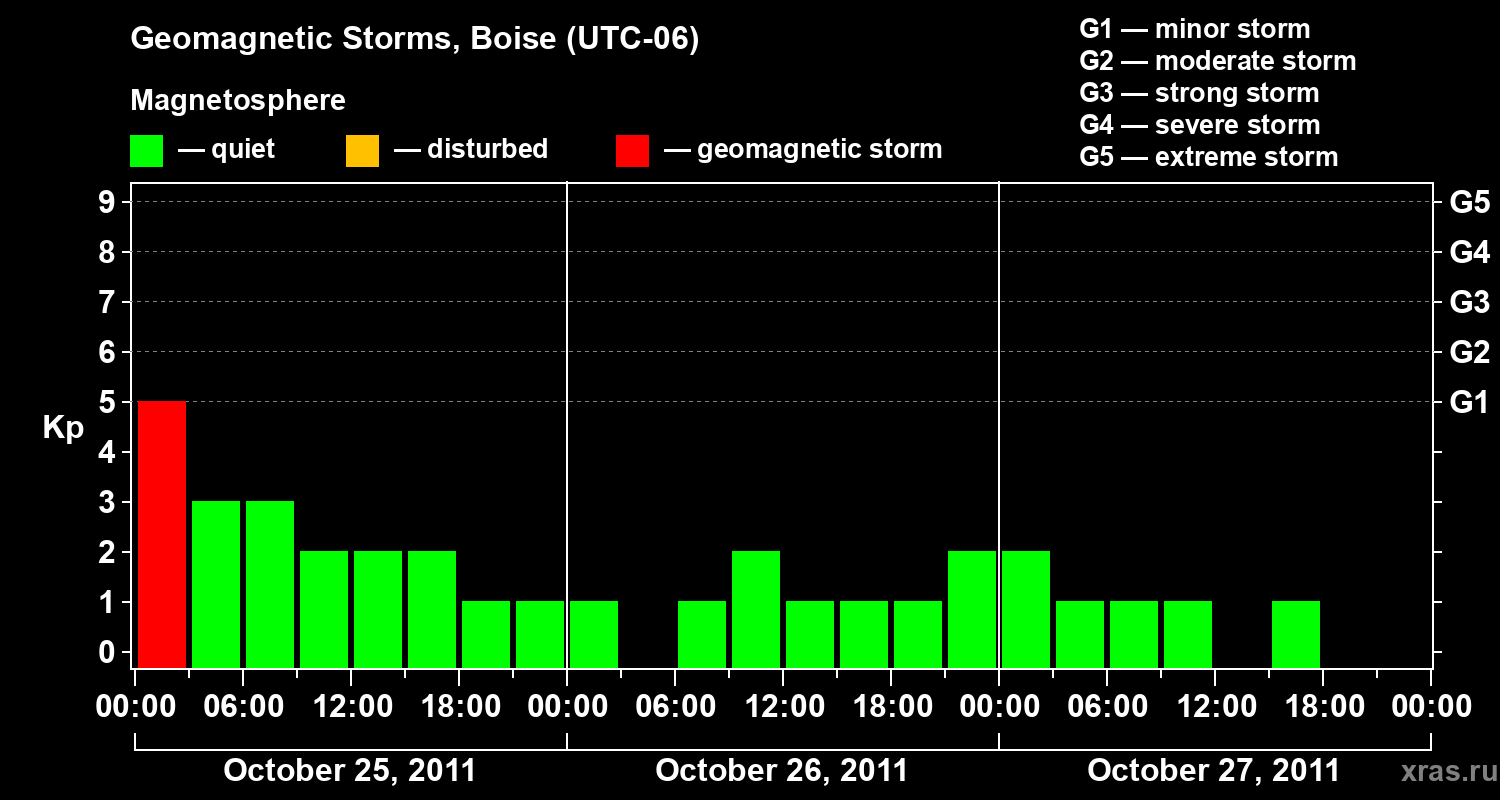 Changes in the geomagnetic index Kp from October 25 to 27, 2011 for mid latitudes