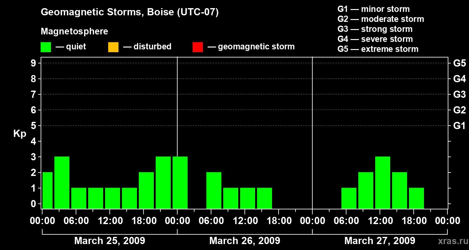 Geomagnetic storms in Boise in March 2009