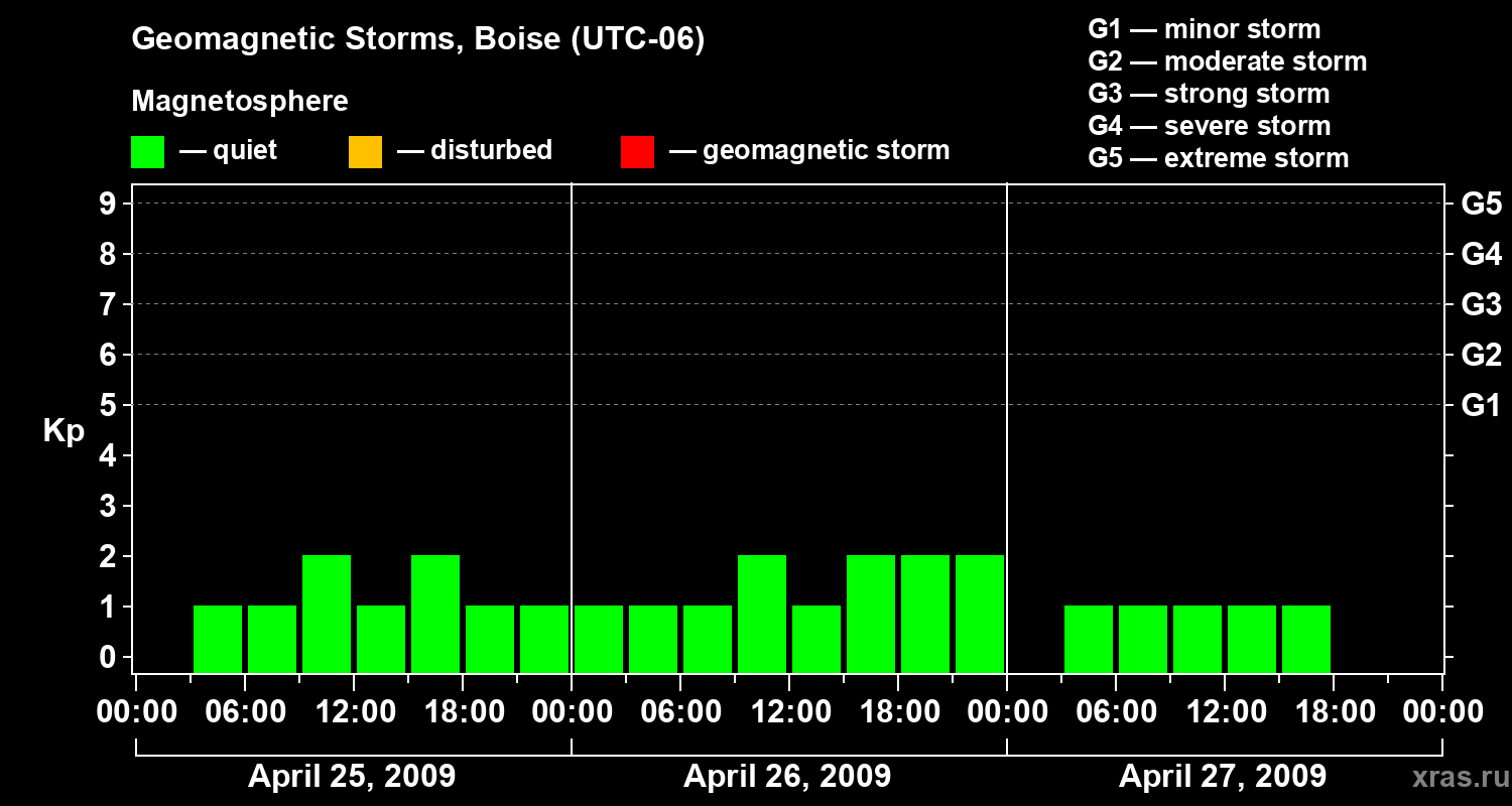 Changes in the geomagnetic index Kp from April 25 to 27, 2009 for mid latitudes