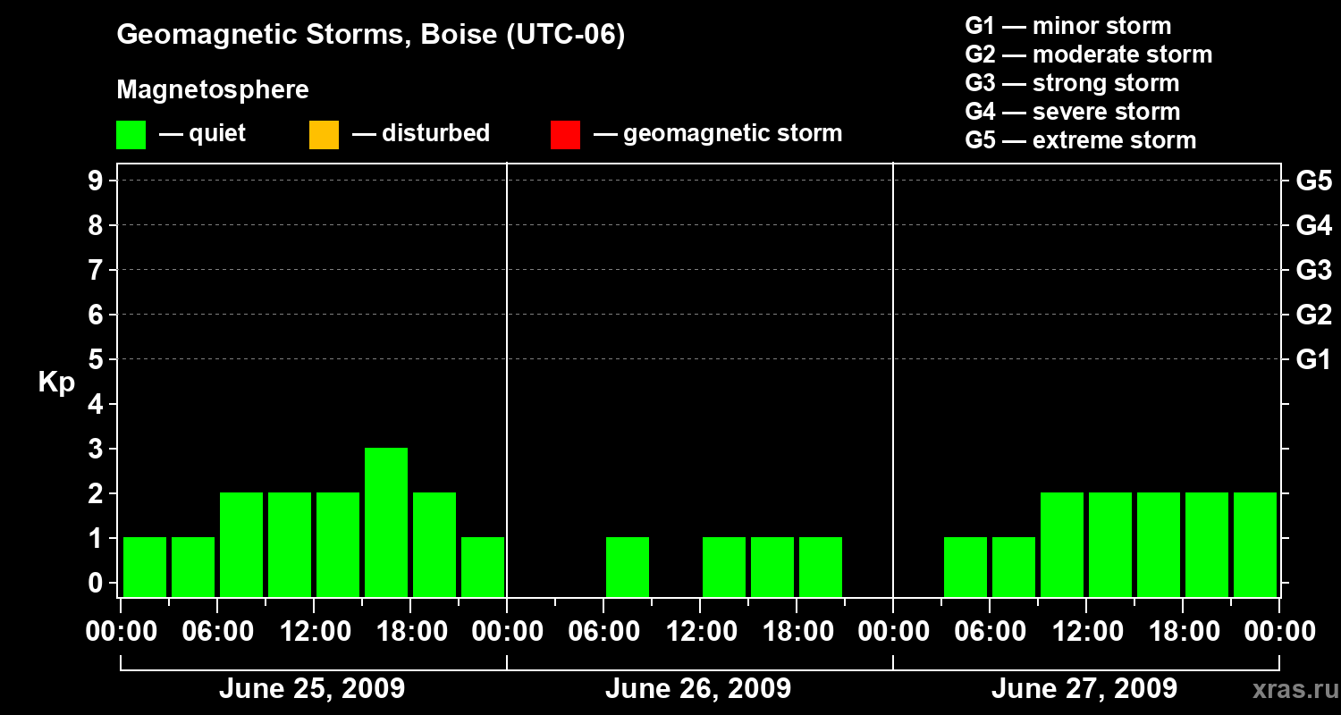 Geomagnetic storms in Boise in June 2009