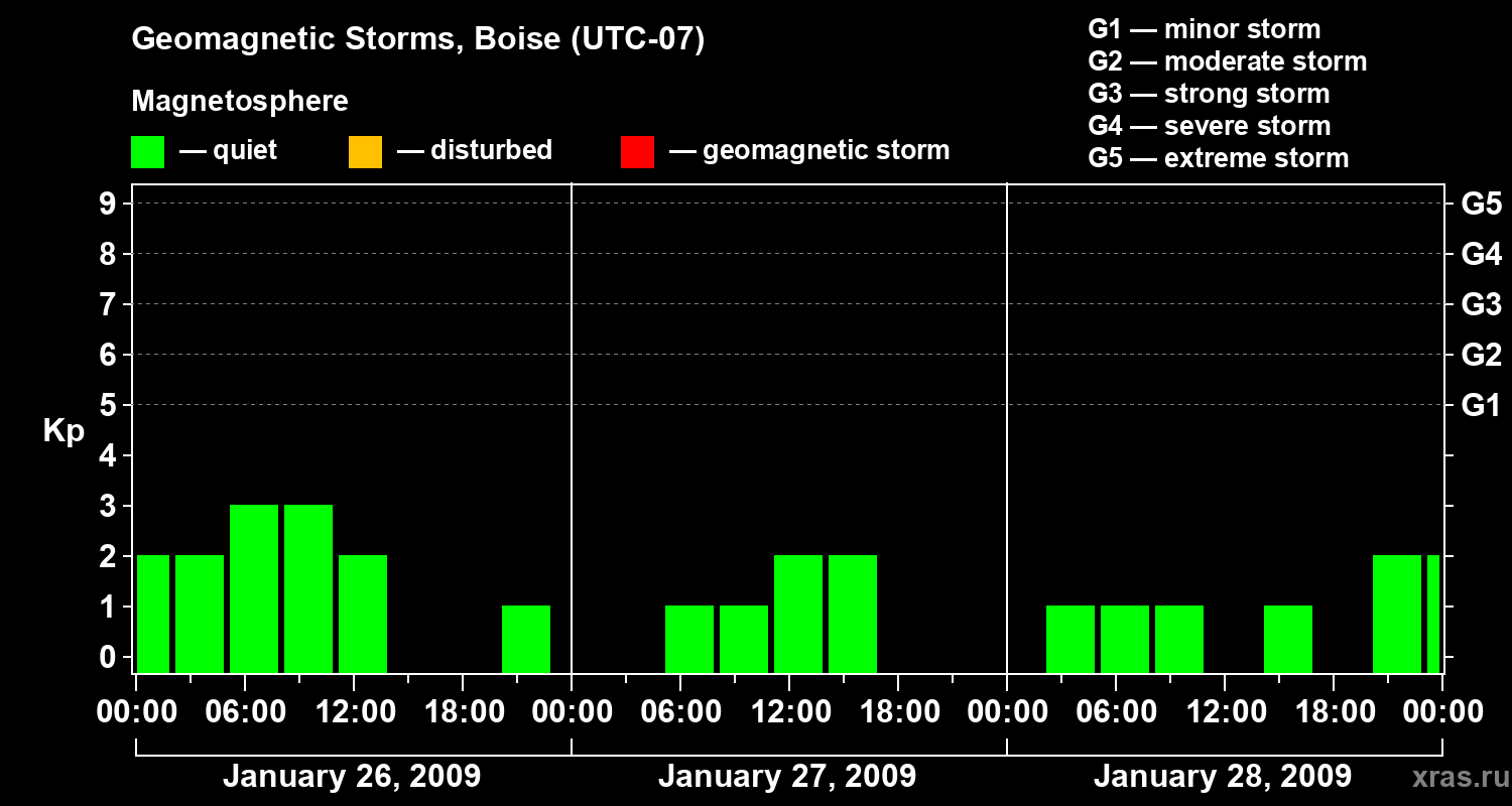 Geomagnetic storms in Boise in January 2009