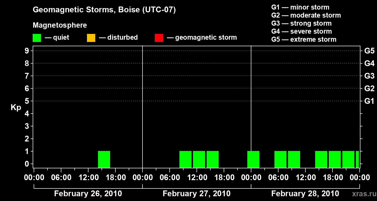 Changes in the geomagnetic index Kp from February 26 to 28, 2010 for mid latitudes
