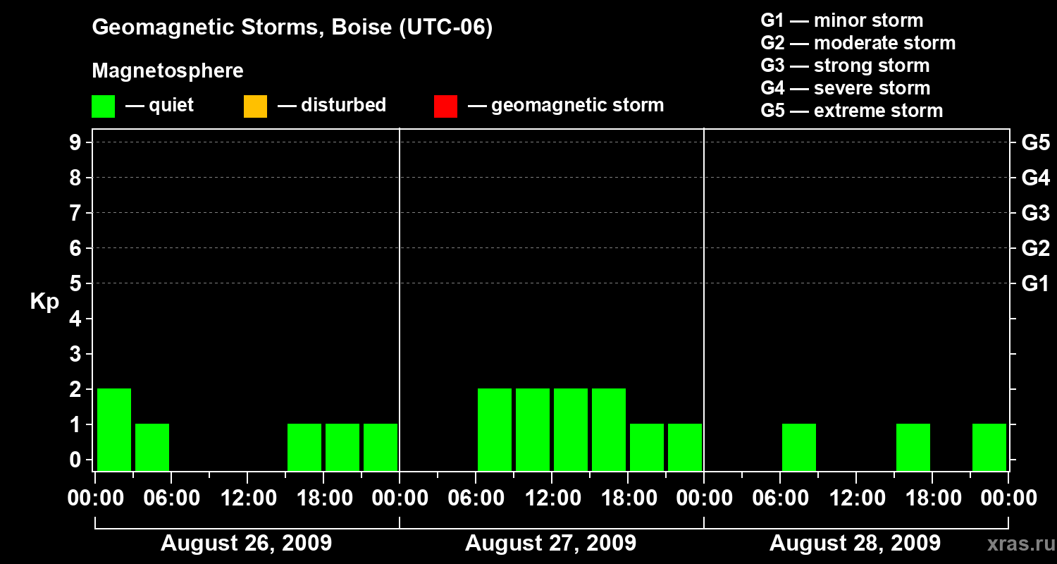 Geomagnetic storms in Boise on Aug 28, 2009