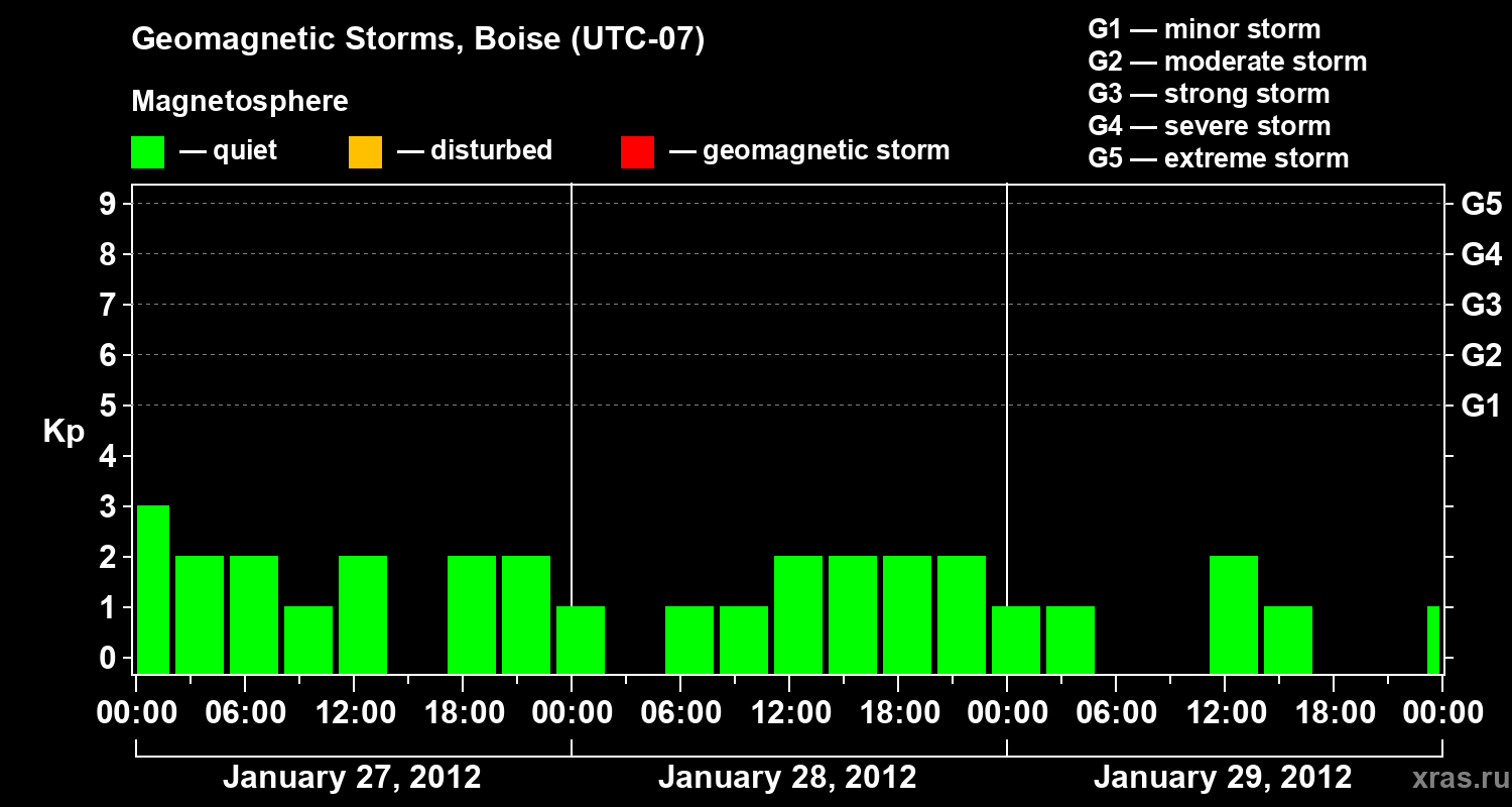 Changes in the geomagnetic index Kp from January 27 to 29, 2012 for mid latitudes