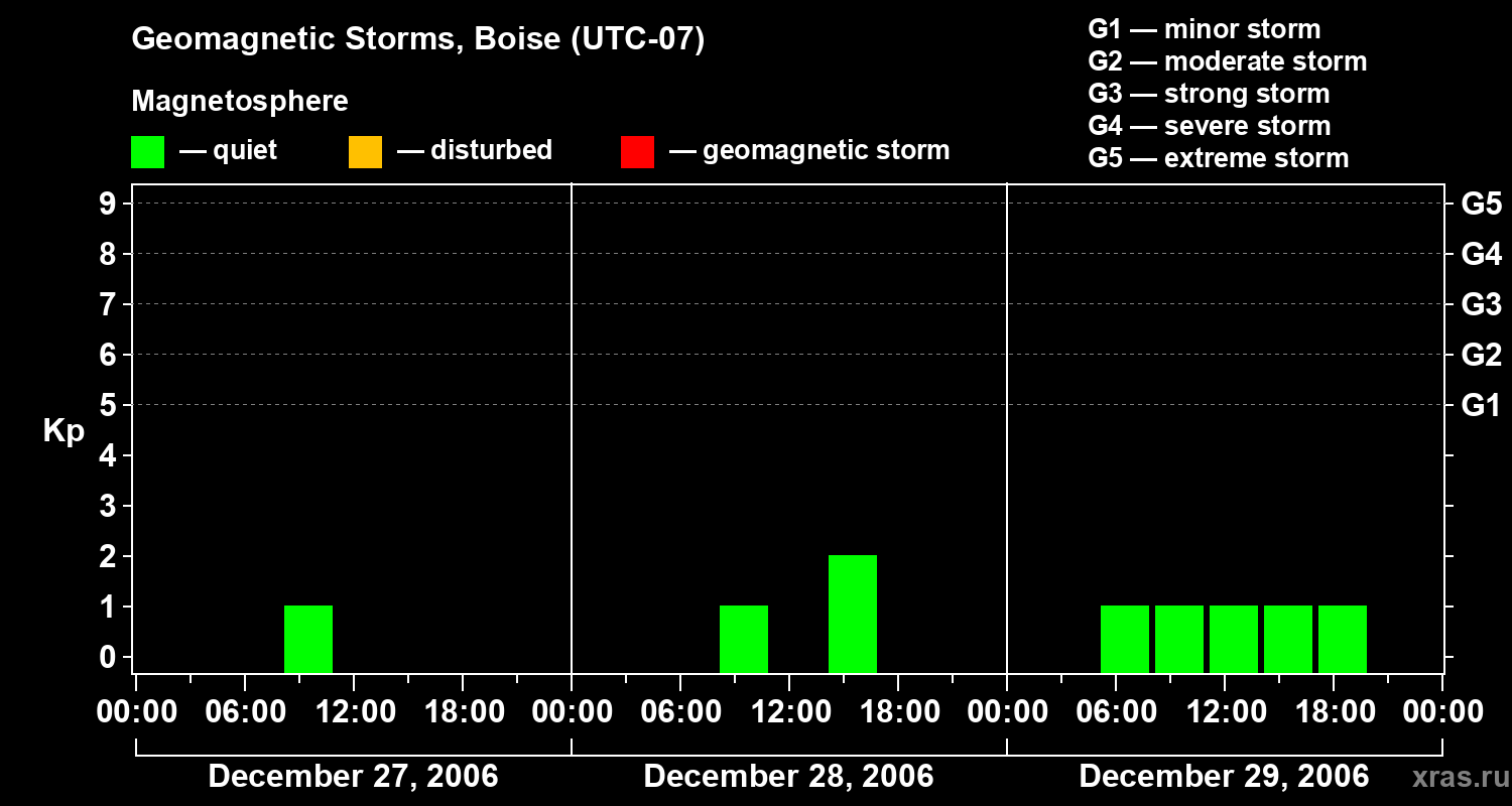 Changes in the geomagnetic index Kp from December 27 to 29, 2006 for mid latitudes