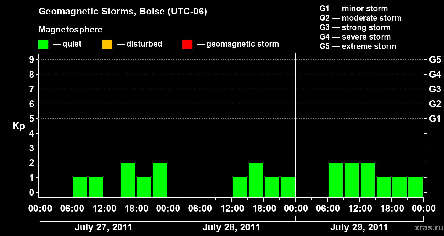 Changes in the geomagnetic index Kp from July 27 to 29, 2011 for mid latitudes