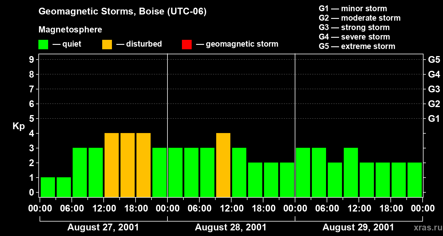 Geomagnetic storms in Boise on Aug 29, 2001