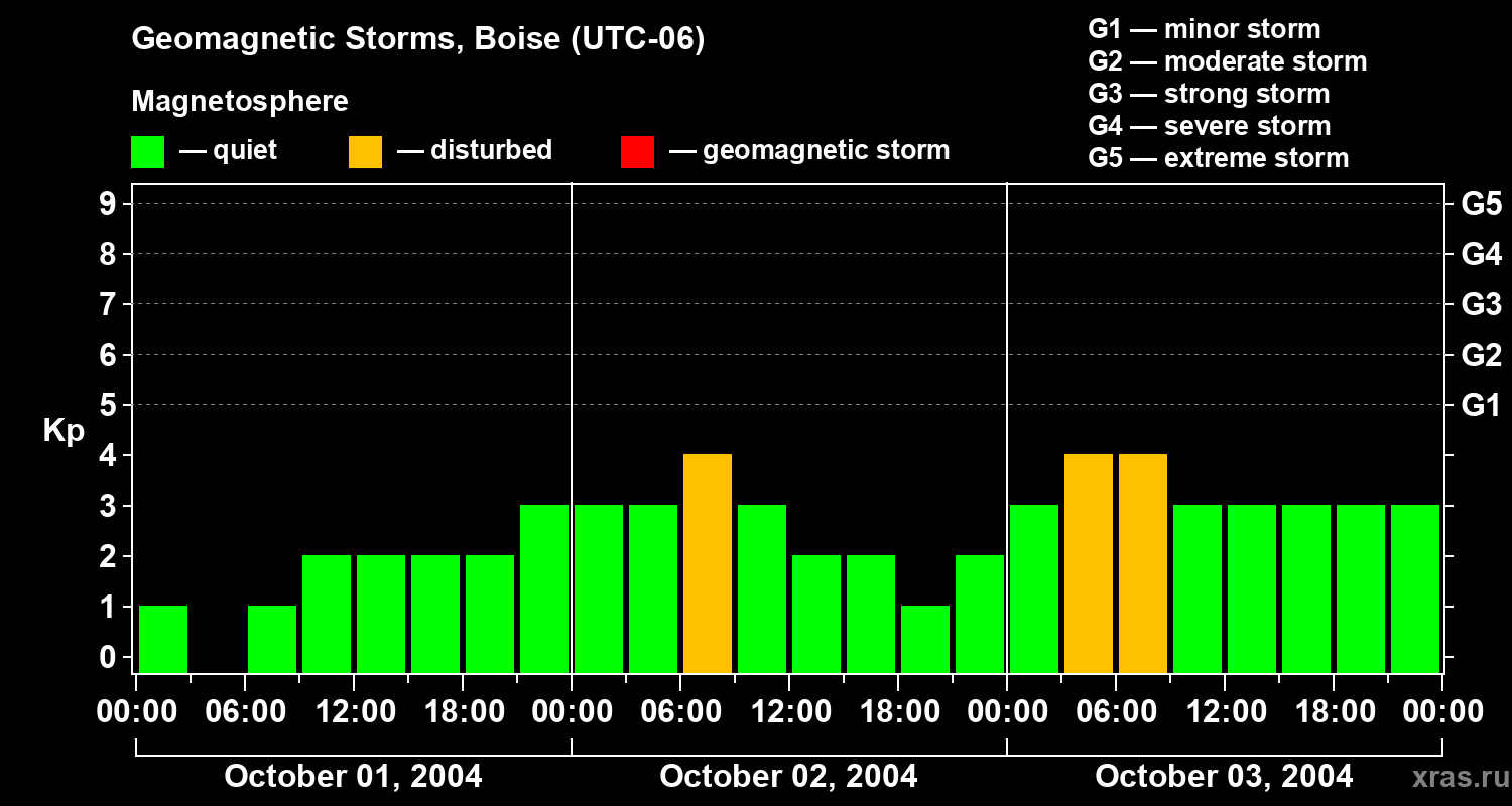 Changes in the geomagnetic index Kp from October 1 to 3, 2004 for mid latitudes