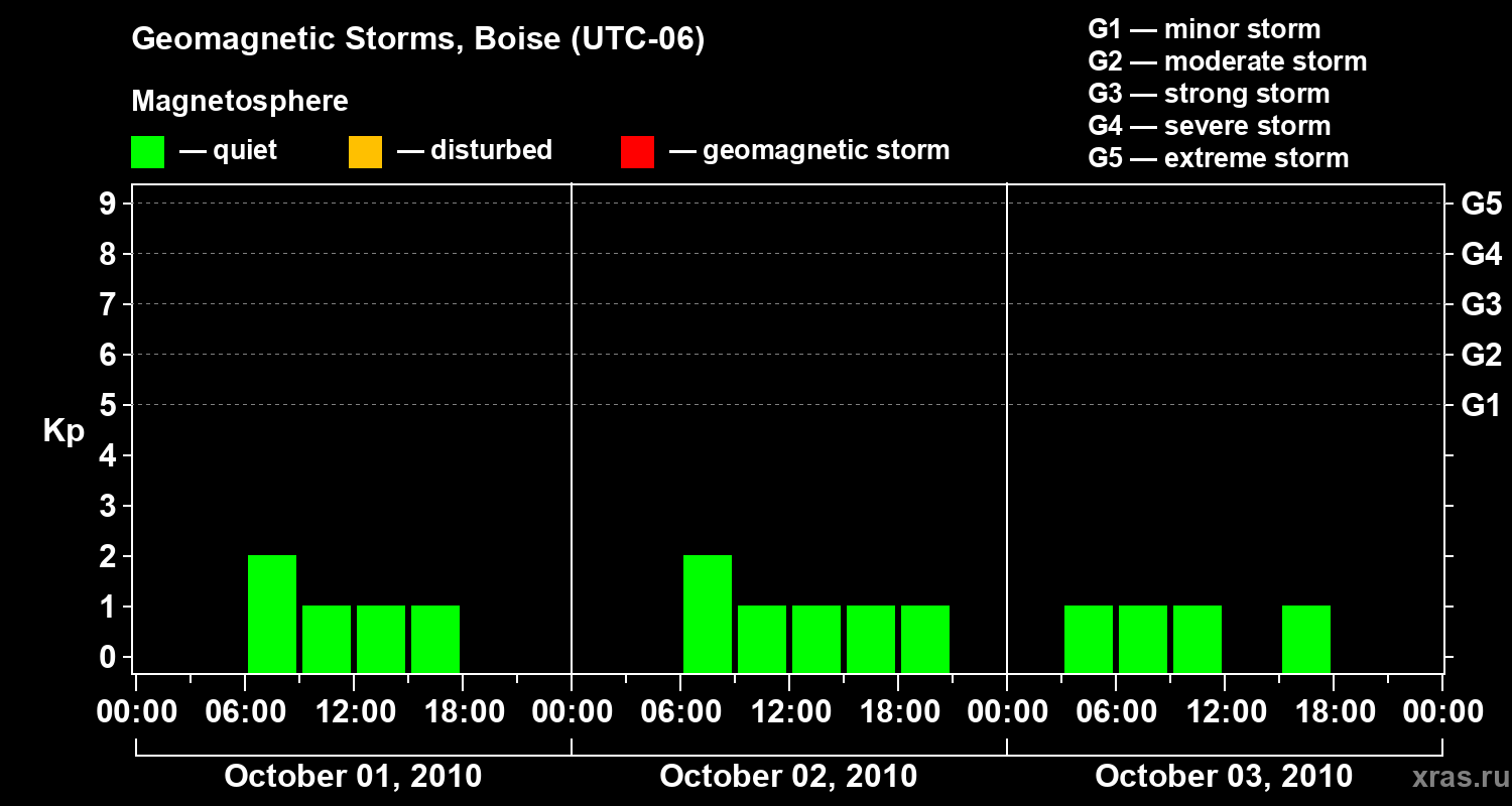 Changes in the geomagnetic index Kp from October 1 to 3, 2010 for mid latitudes