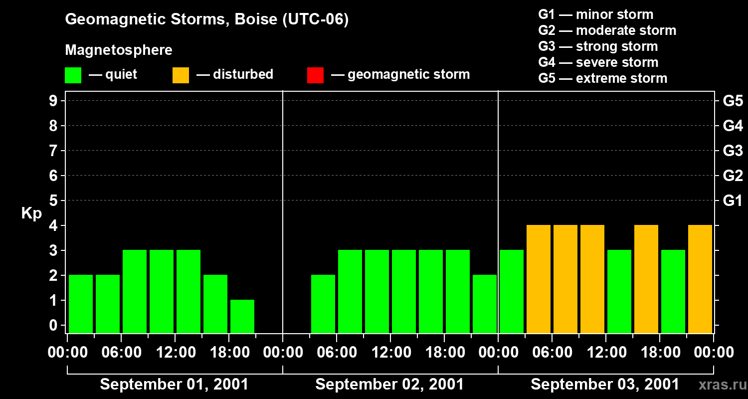 Changes in the maximum daily geomagnetic index Kp in September 2001