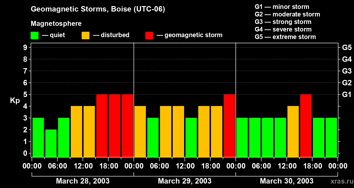 Geomagnetic storms in Boise on Mar 30, 2003
