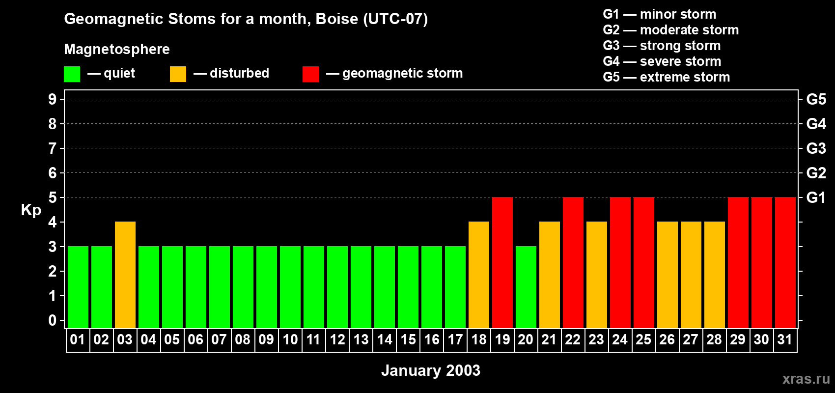Geomagnetic storms in Boise in January 2003