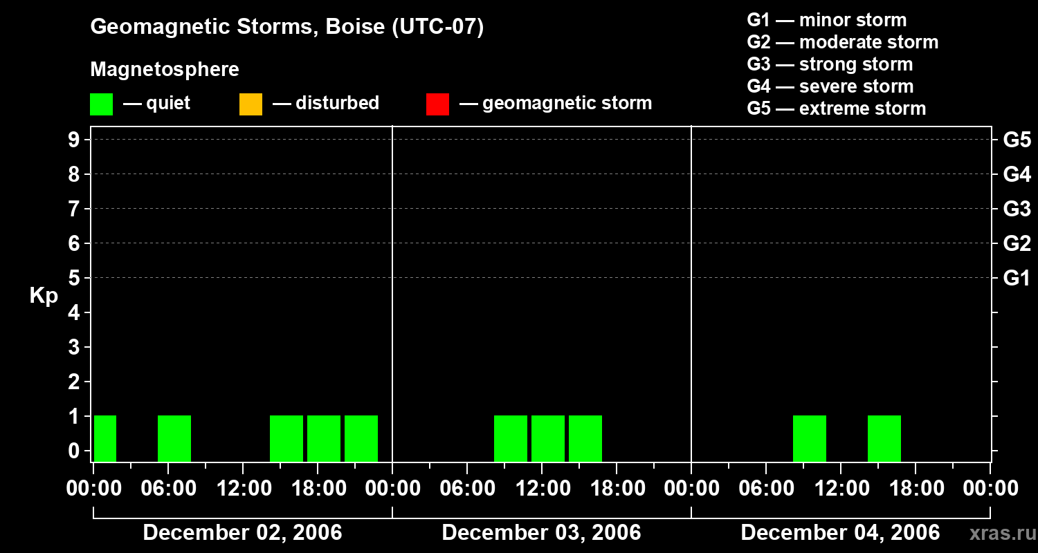 Changes in the geomagnetic index Kp from December 2 to 4, 2006 for mid latitudes