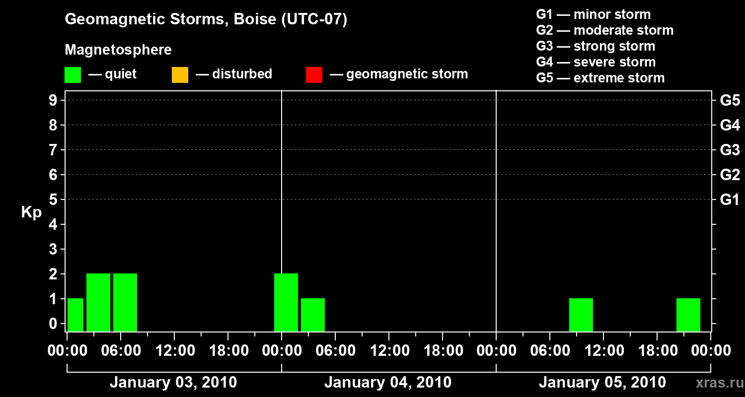 Changes in the geomagnetic index Kp from January 3 to 5, 2010 for mid latitudes