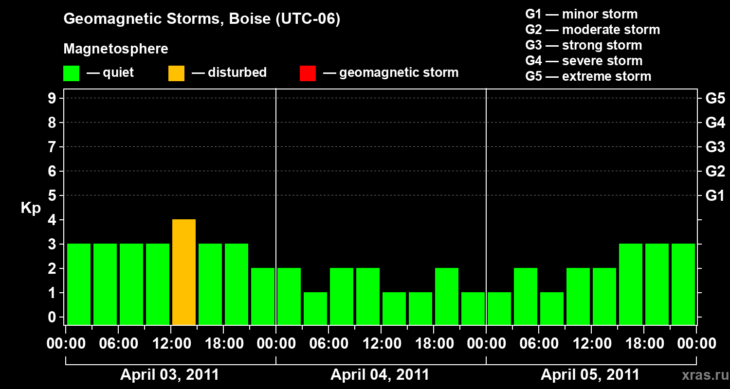Changes in the geomagnetic index Kp from April 3 to 5, 2011 for mid latitudes