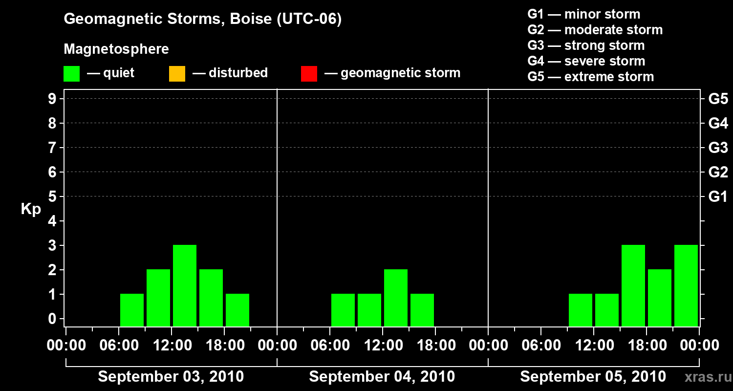 Changes in the geomagnetic index Kp from September 3 to 5, 2010 for mid latitudes