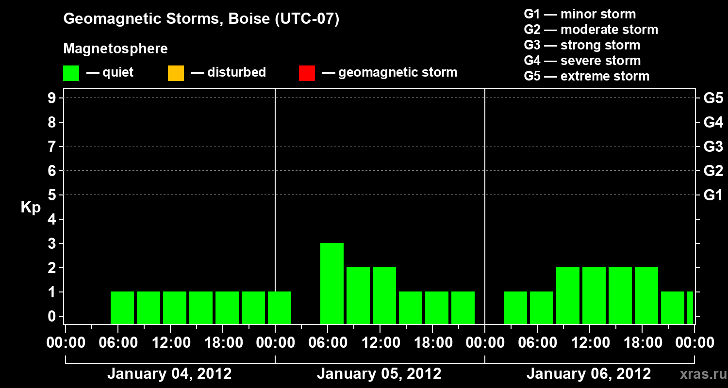Geomagnetic storms in Boise in January 2012
