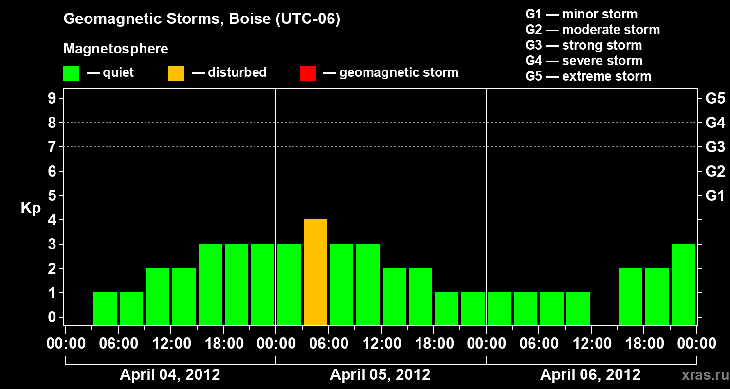 Changes in the geomagnetic index Kp from April 4 to 6, 2012 for mid latitudes