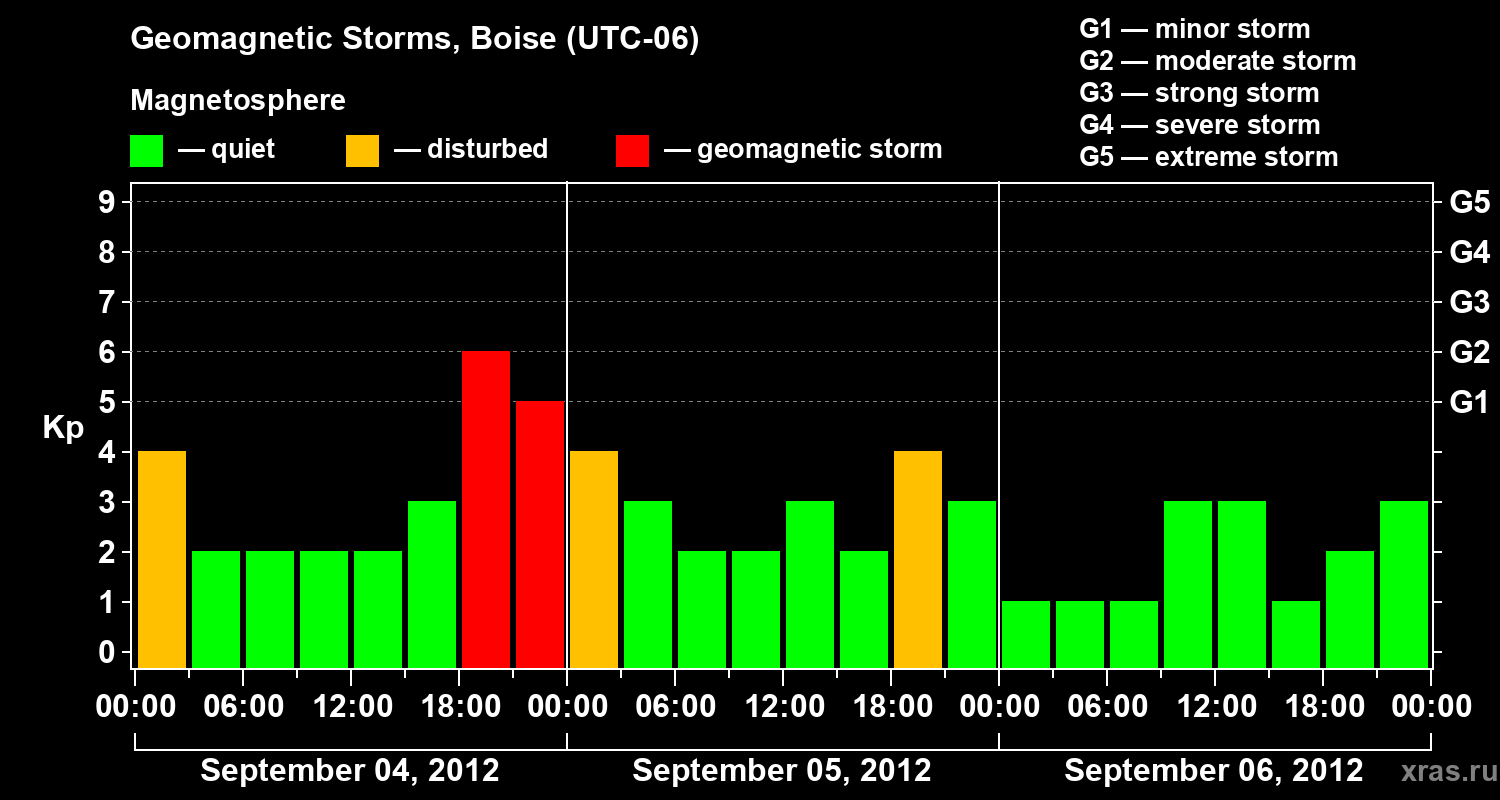 Changes in the geomagnetic index Kp from September 4 to 6, 2012 for mid latitudes
