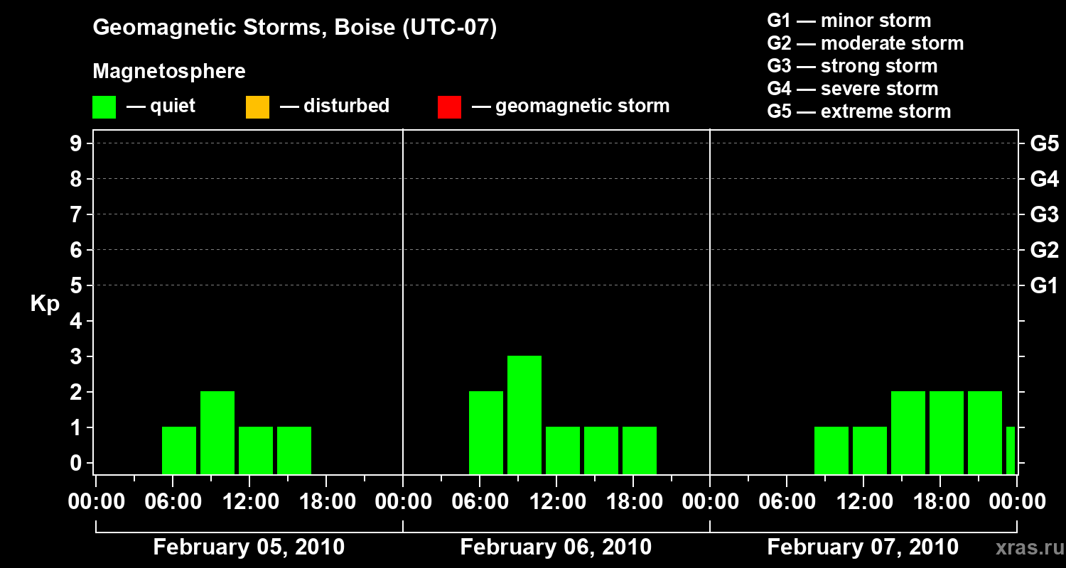 Changes in the geomagnetic index Kp from February 5 to 7, 2010 for mid latitudes