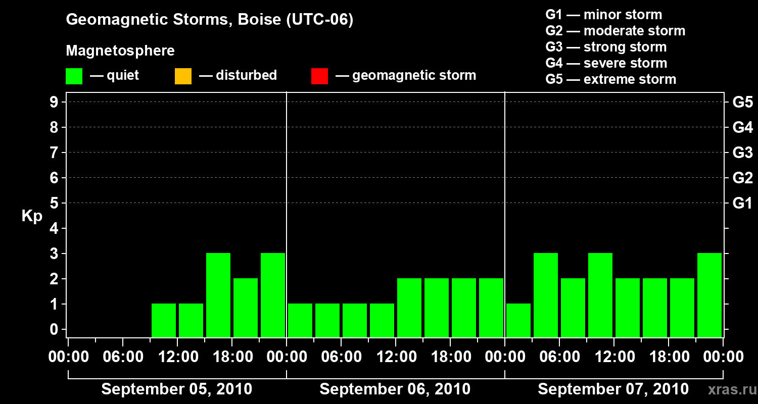 Changes in the geomagnetic index Kp from September 5 to 7, 2010 for mid latitudes