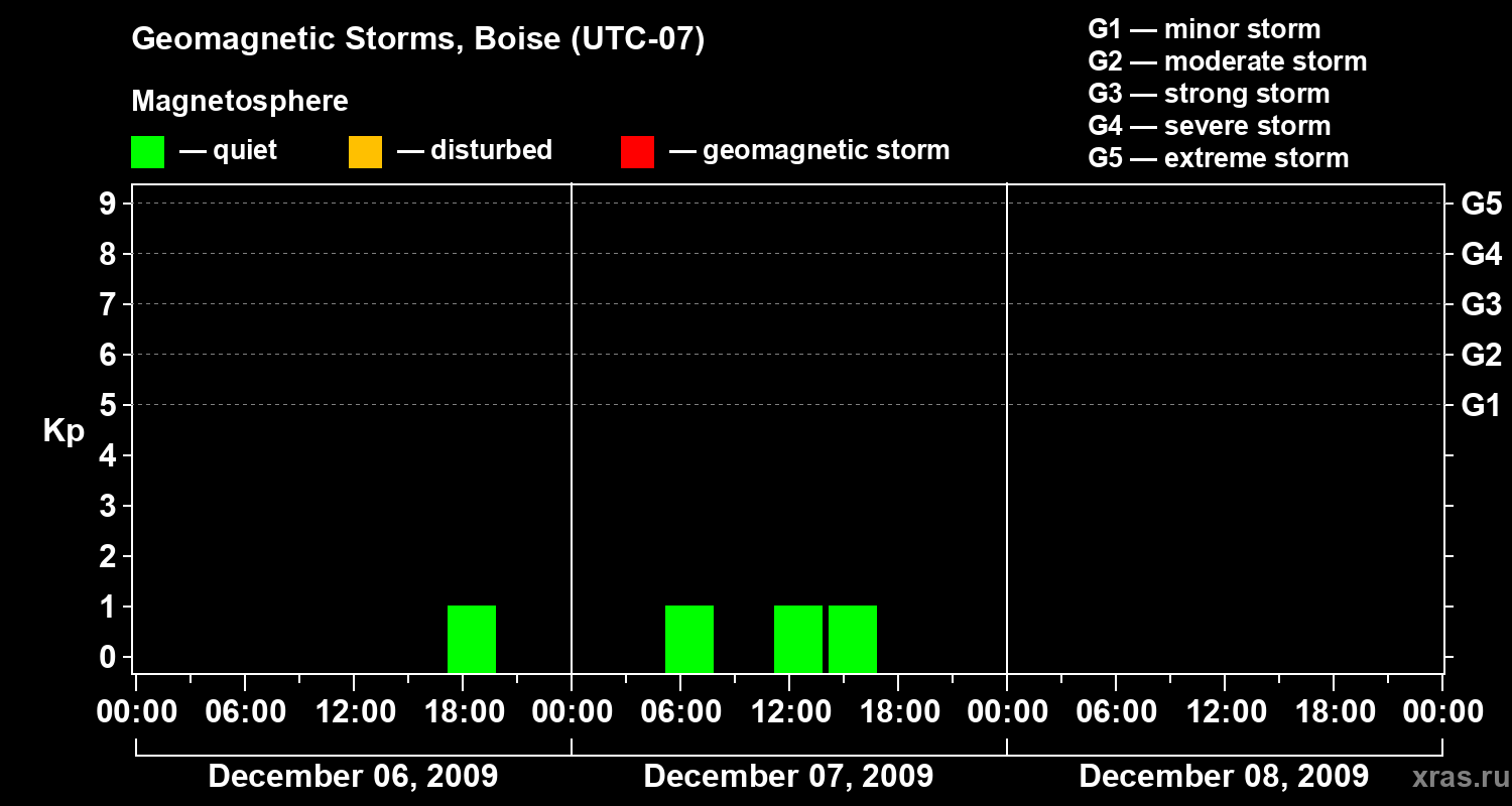 Changes in the geomagnetic index Kp from December 6 to 8, 2009 for mid latitudes