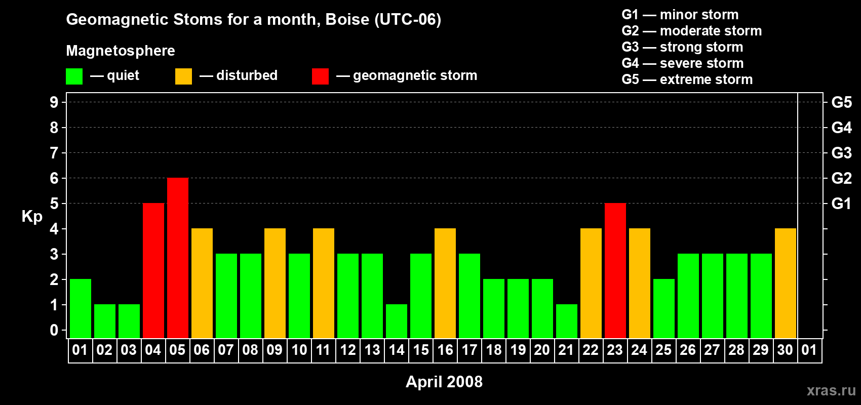 List of magnetic storms in April 2008