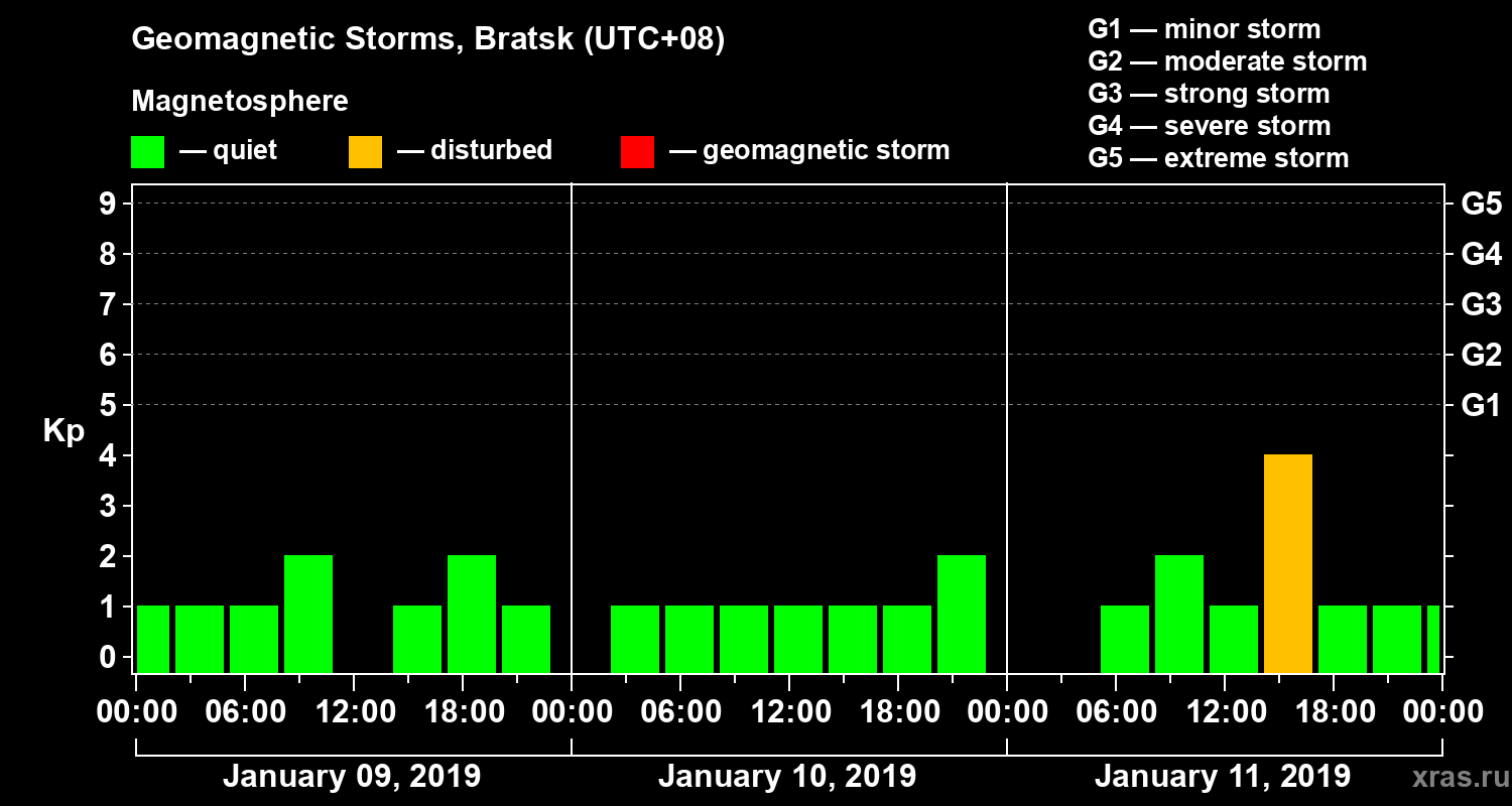 Geomagnetic storms in Bratsk — Jan 11, 2019
