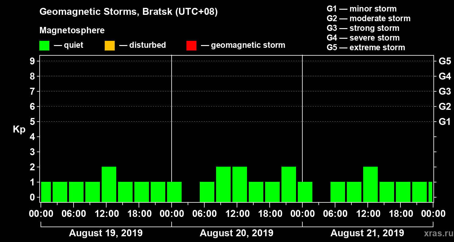 Geomagnetic storms in Bratsk — Aug 21, 2019