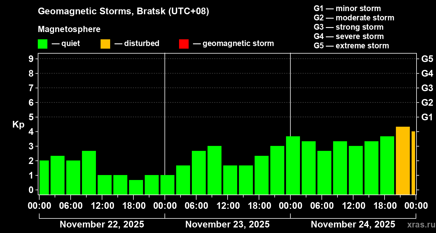 Geomagnetic storms in Bratsk — Nov 24, 2025