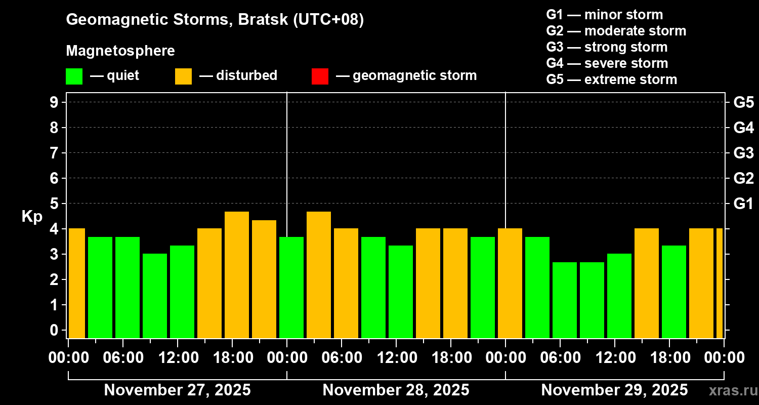 Geomagnetic storms in Bratsk — Nov 29, 2025
