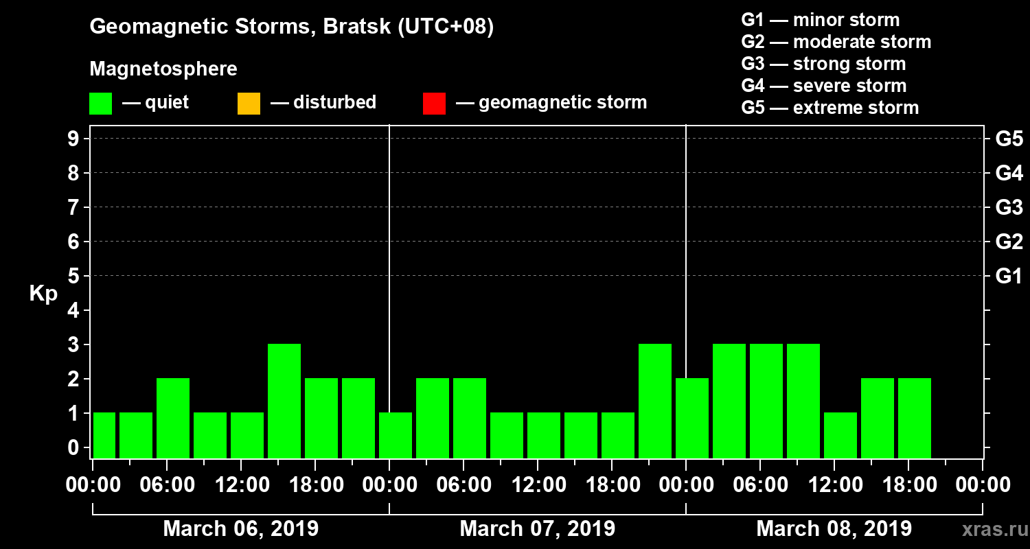 Geomagnetic storms in Bratsk on Mar 08, 2019
