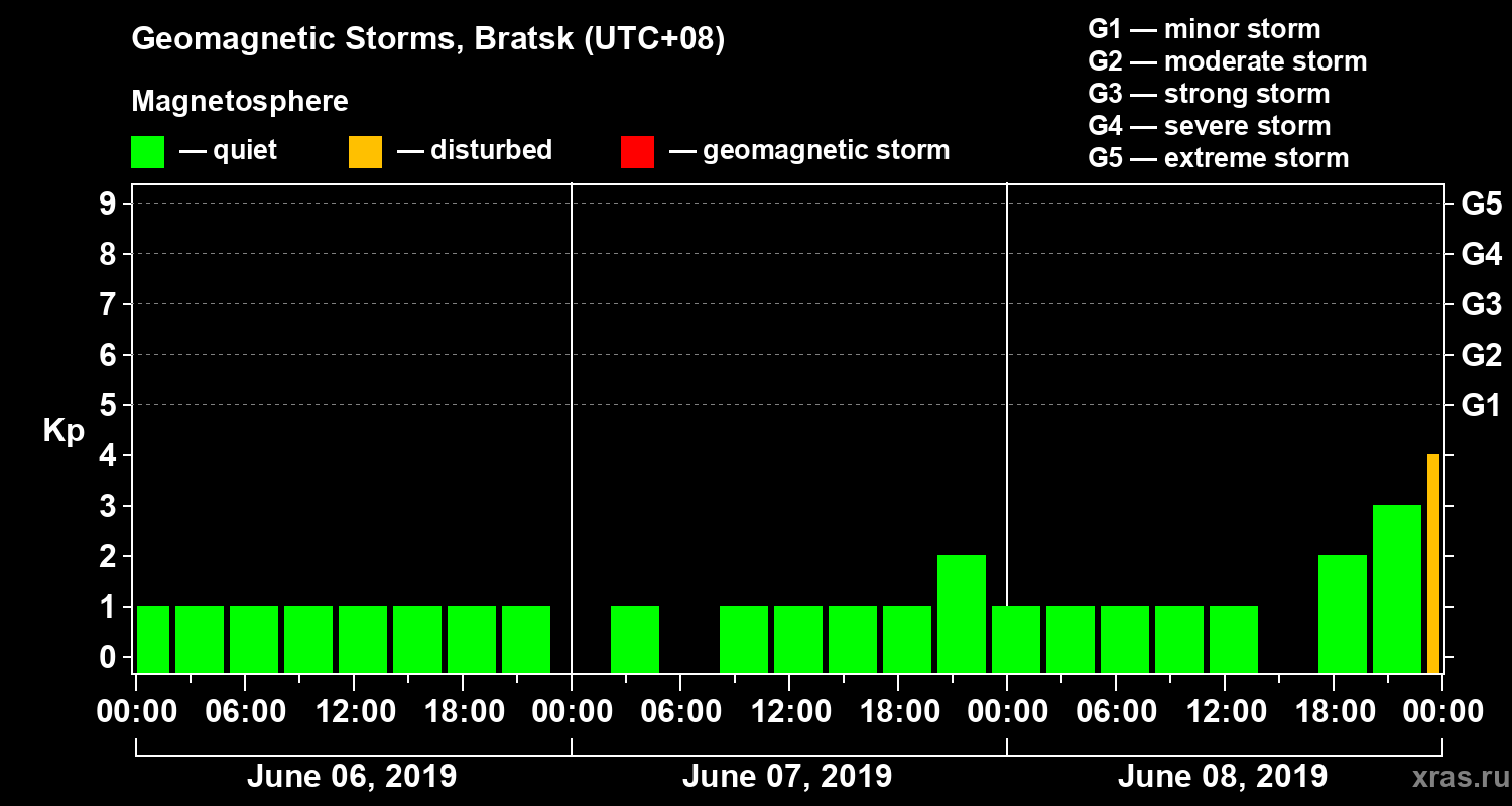 Geomagnetic storms in Bratsk on Jun 08, 2019
