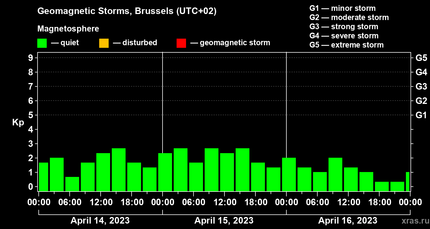 Geomagnetic storms in Brussels — Apr 16, 2023