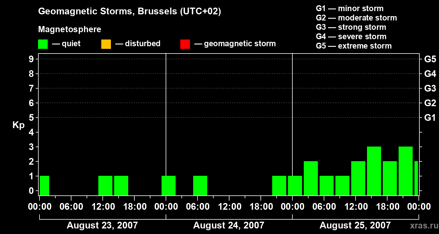 Geomagnetic storms in Brussels — Aug 25, 2007