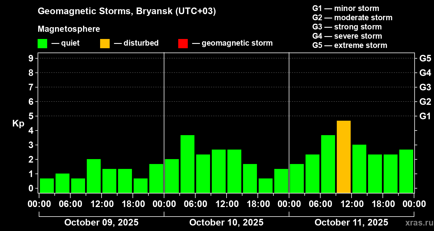 Geomagnetic storms in Bryansk — Oct 11, 2025