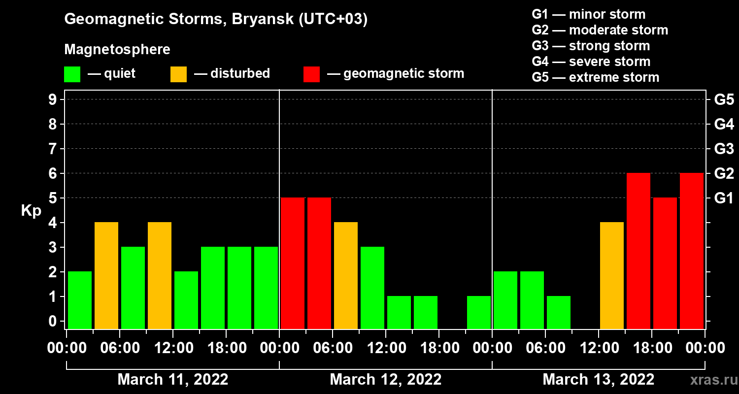 Geomagnetic storms in Bryansk — Mar 13, 2022