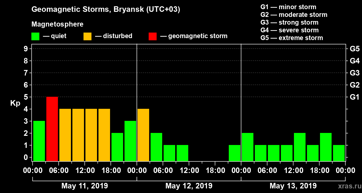 Geomagnetic storms in Bryansk on May 13, 2019