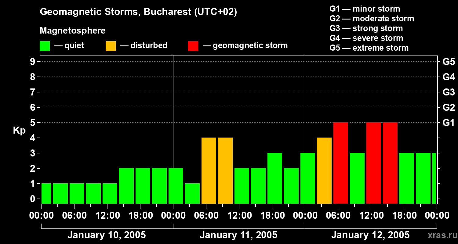 Geomagnetic storms in Bucharest — Jan 12, 2005