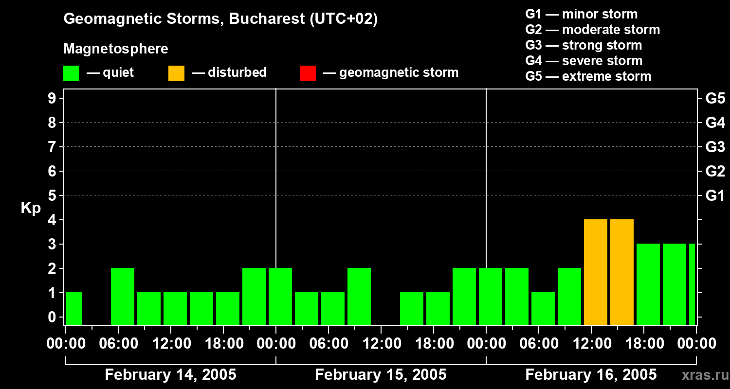 Geomagnetic storms in Bucharest — Feb 16, 2005