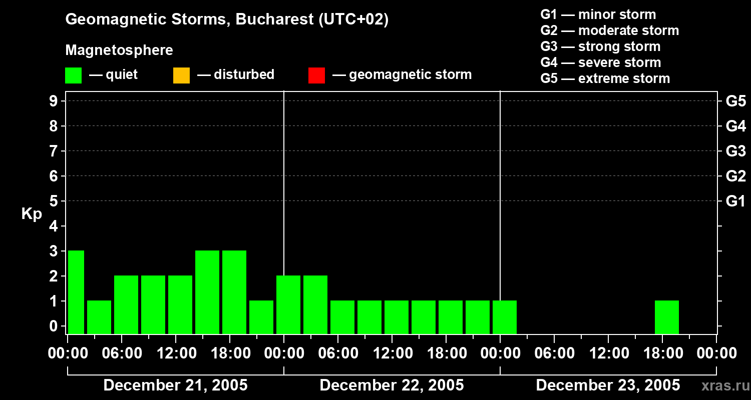 Changes in the geomagnetic index Kp from December 21 to 23, 2005 for mid latitudes