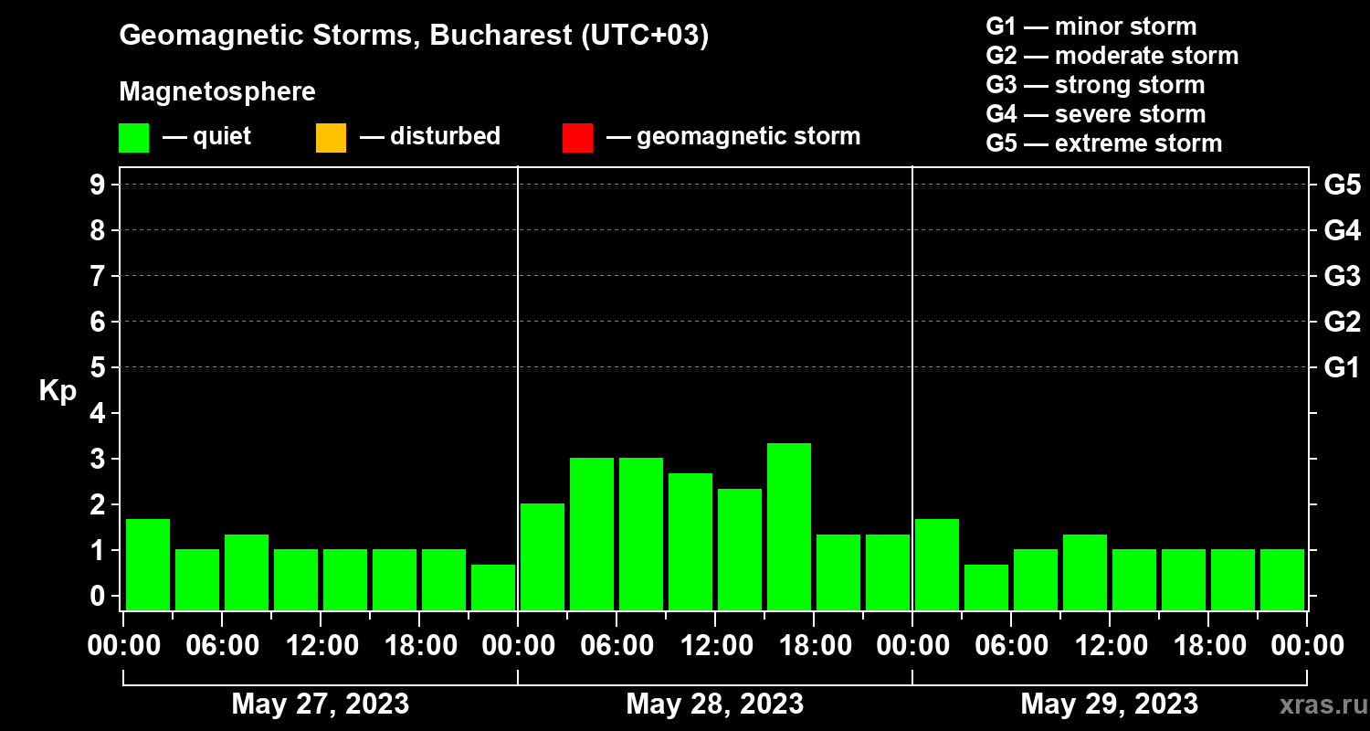 Geomagnetic storms in Bucharest — May 29, 2023