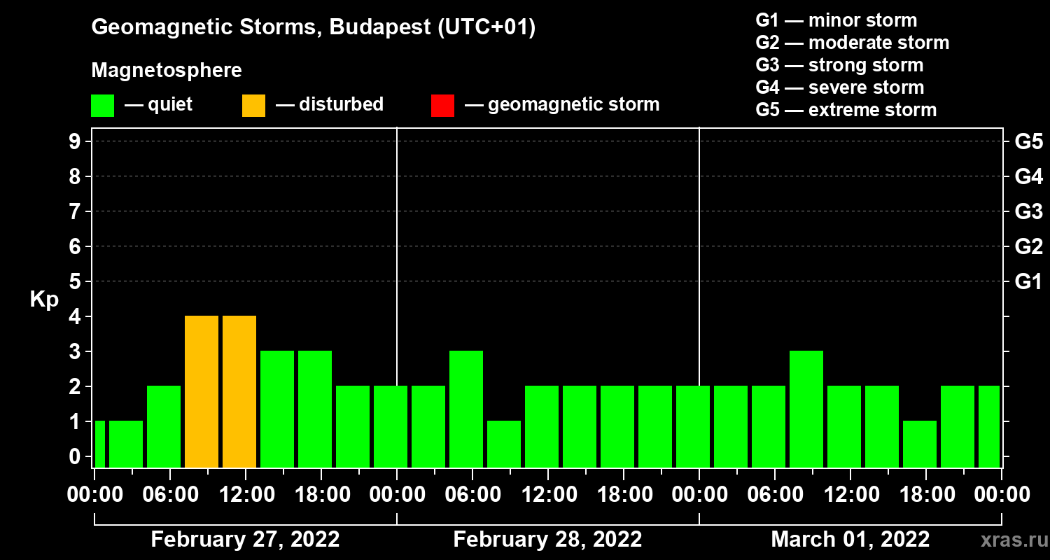 Geomagnetic storms in Budapest on Mar 01, 2022