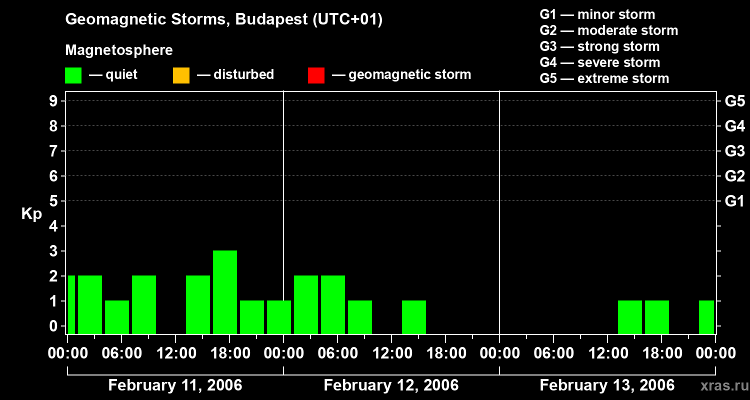 Geomagnetic storms in Budapest — Feb 13, 2006