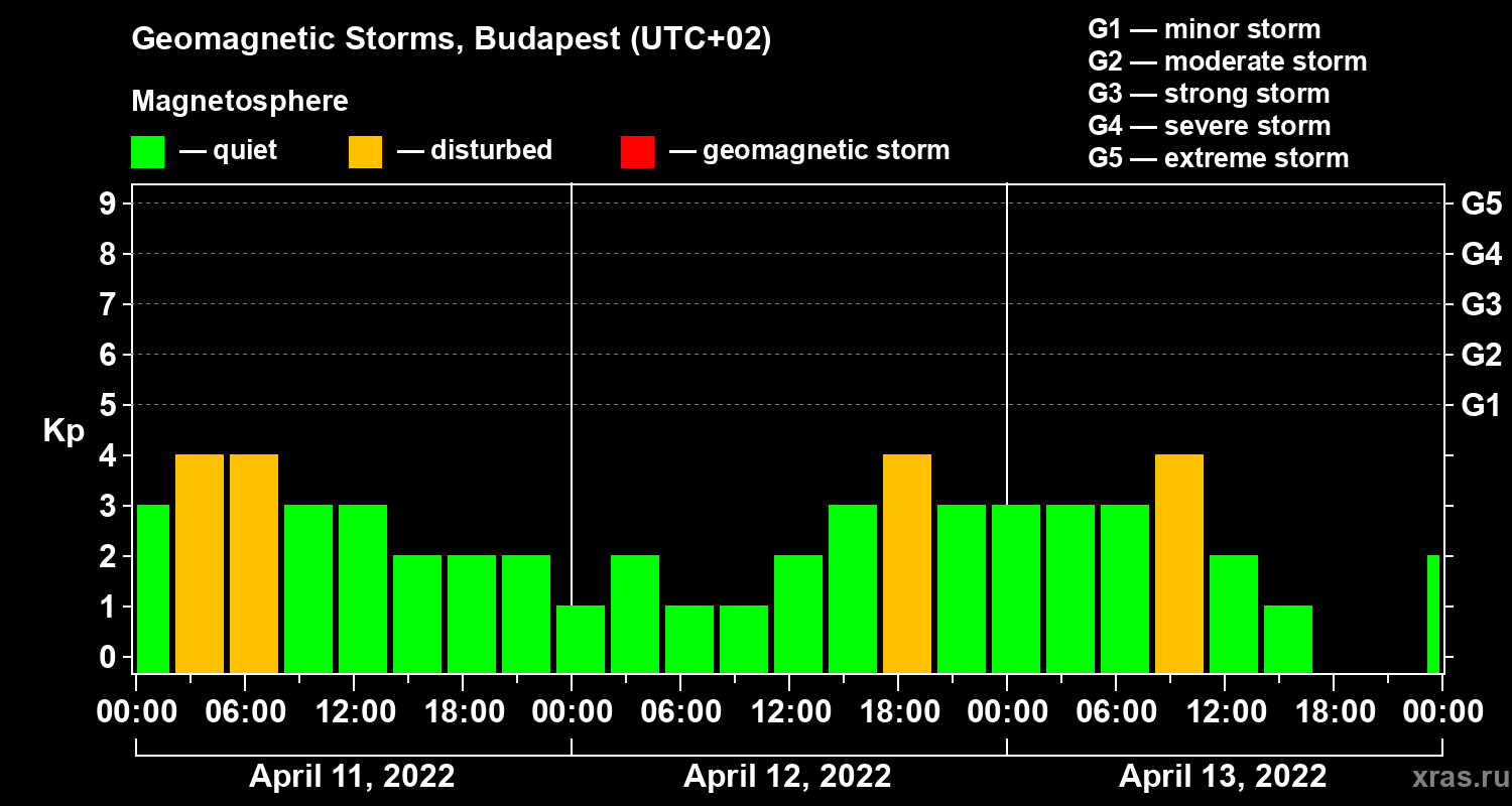 Geomagnetic storms in Budapest — Apr 13, 2022