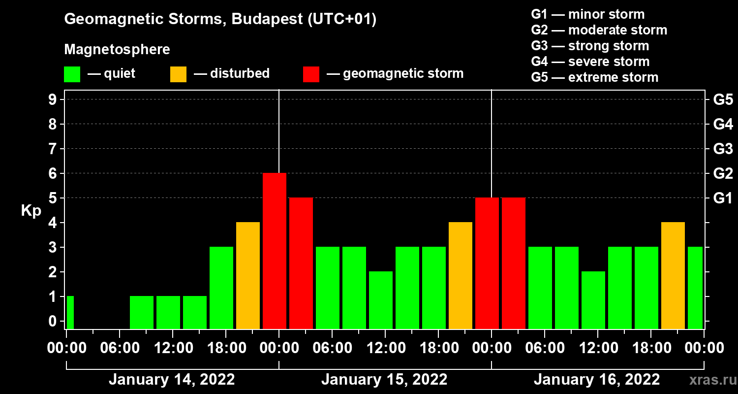 Geomagnetic storms in Budapest — Jan 16, 2022