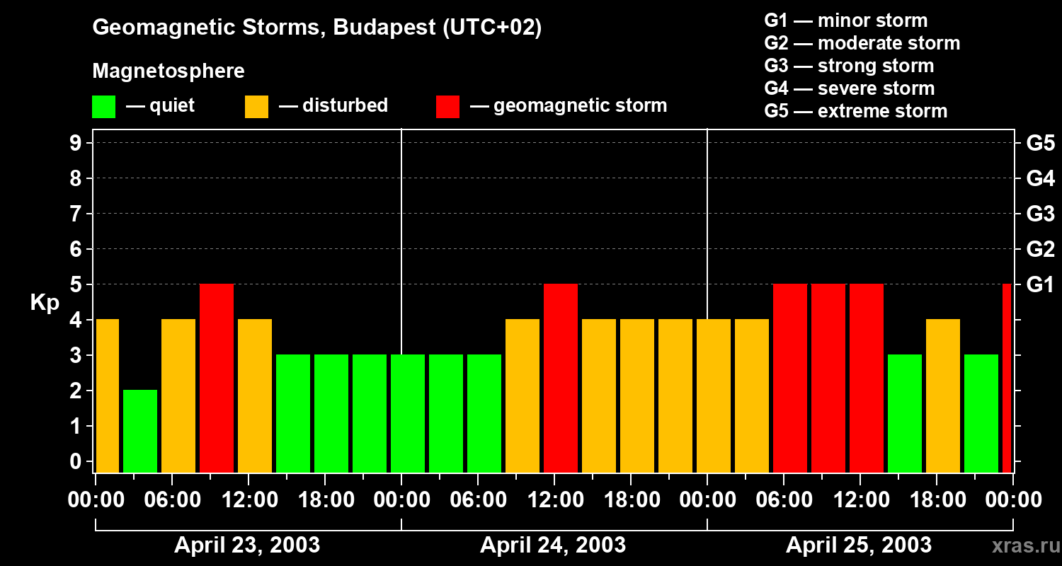 Geomagnetic storms in Budapest — Apr 25, 2003