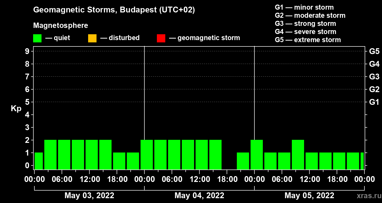 Changes in the geomagnetic index Kp from May 3 to 5, 2022 for mid latitudes