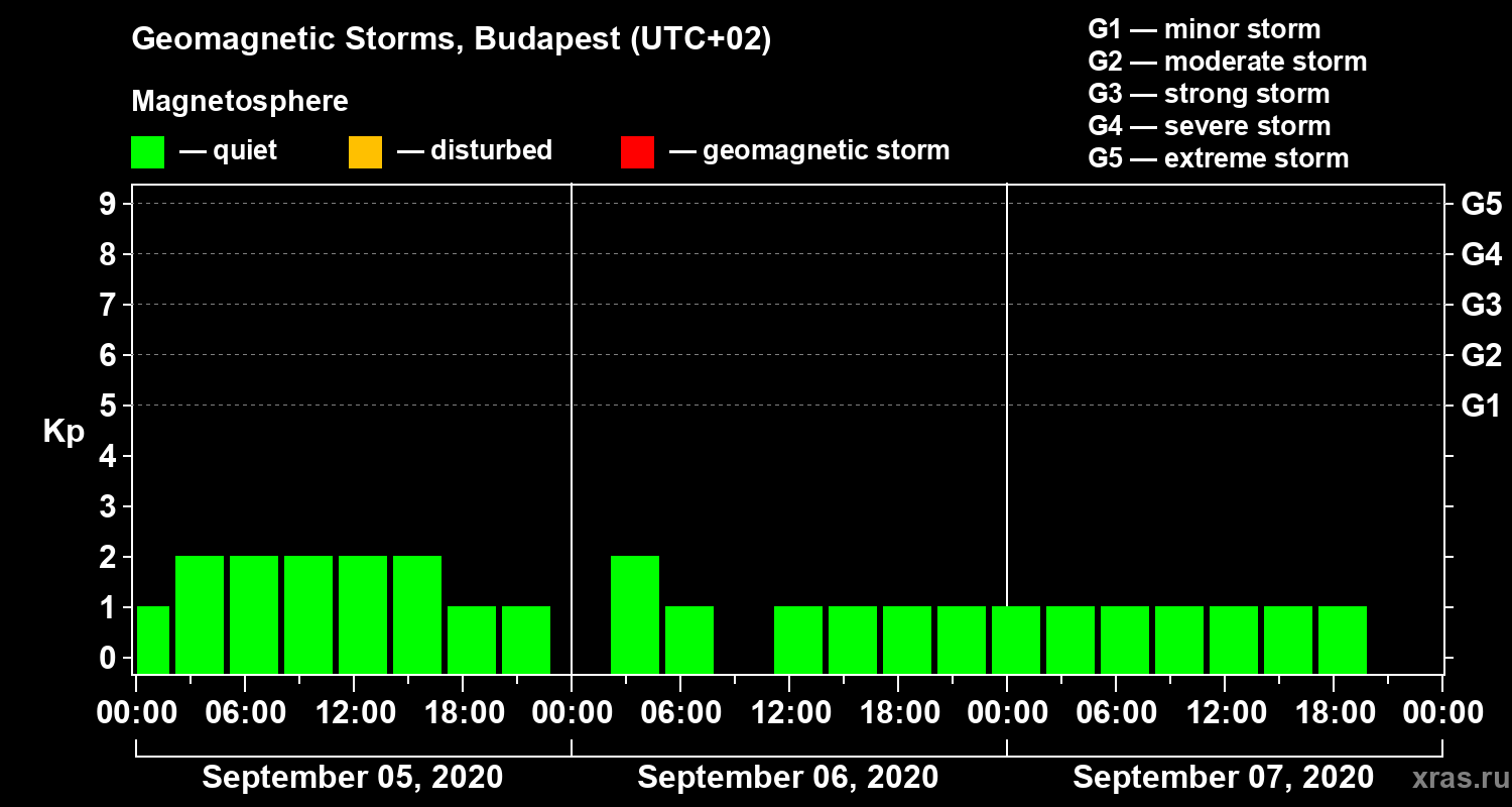 Geomagnetic storms in Budapest on Sep 07, 2020