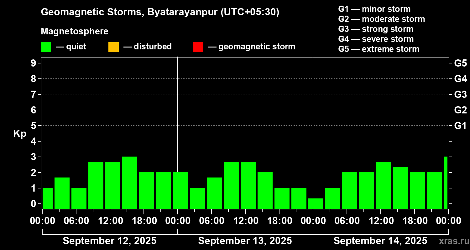 Geomagnetic storms in Byatarayanpur — Sep 14, 2025